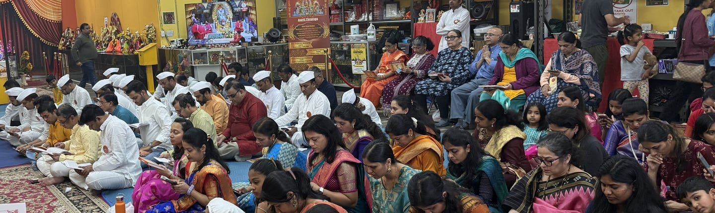 The entire event lasts about 1 hour and 30 minutes. We follow a specific, timed sequence of prayers and bhajans from our official booklet. This structure ensures that the event remains disciplined, meditative, and focused.